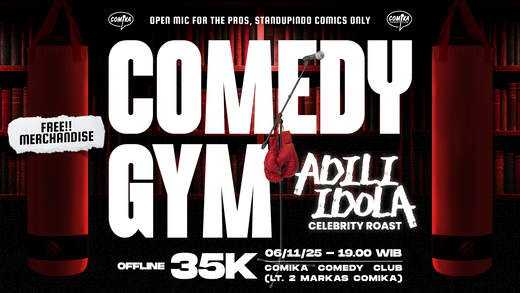 arga Tiket Offline Comedy Gym x Adili Idola : Rp. 35.000,- (Harga belum termasuk Pajak Hiburan 10%).